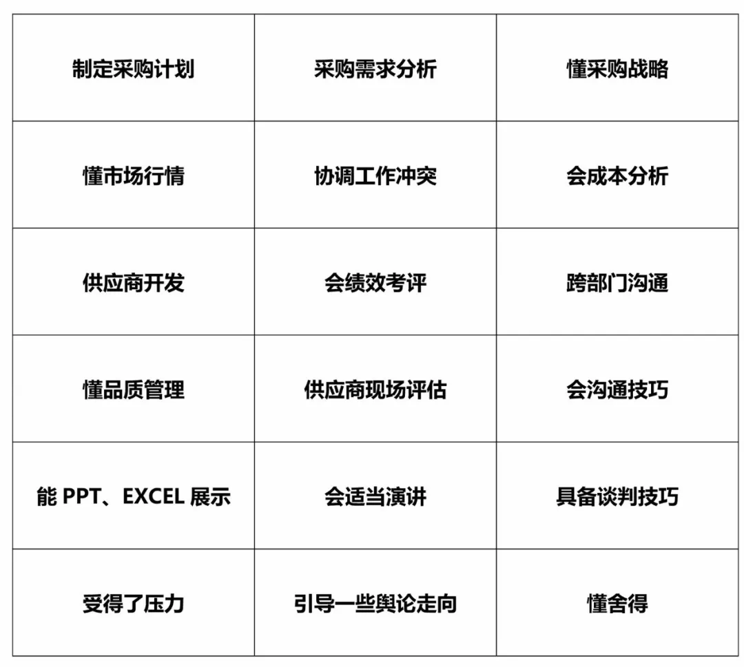 总之,采购人员需要培养的是综合素质。