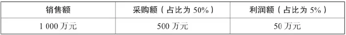 假设某公司一年的销售额是1000万元,其中采购额占比为50%,即500万元,利润额占比为5%,即50万元,如表1-1所示。