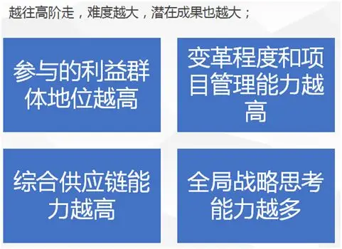 最后我们希望,做采购的人,不管经济形式多么恶劣,社会用工、材料成本怎么逐年上升,这些都不是自己的借口让综合供应链成本上升的理由,往往企业越大,能够做工作的地方越多,能够省钱的机会也越大,如果还心安理得两手一摊的告诉老板,很不幸成本节约目的没有达到,而且还Cost in(成本上升了),那么只能说,您不仅没有做好采购,而且离采购供应链管理还很远呢。因为,上述降本五台阶:
