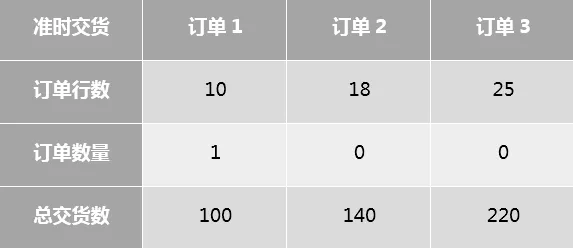 由于订单2和订单3都没有满足整张订单的准确交货条件,因此不能被统计在分子中。
