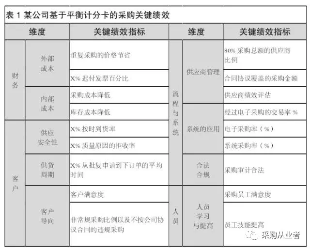 采购绩效不仅在不同企业间的评估方法差别很大,甚至同一个公司也有着各自的评判标准,在充分反映自身特色的同时,却也面临着评价机制不连贯的问题。为解决这一问题,目前比较通行的做法是采用同一个平衡记分卡(balancedscorecard)来评价绩效,使采购的衡量标准得以统一。