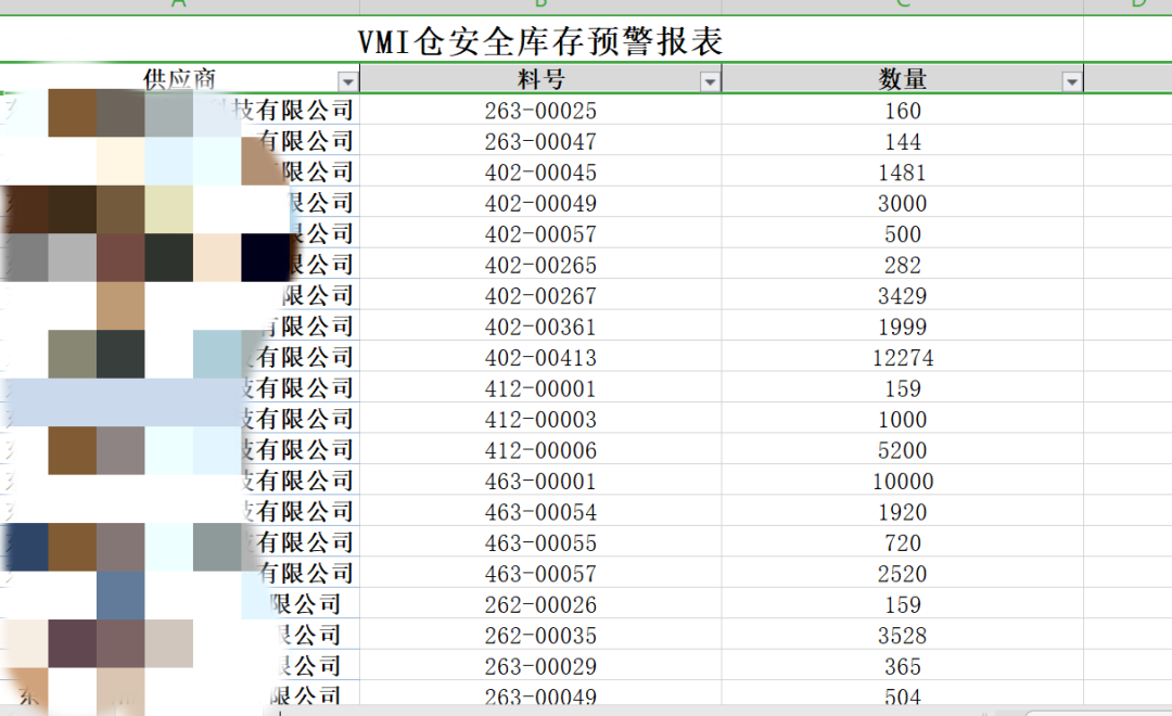 因为该运输商同时给我司提供VMI仓库管理服务,所以我特别观察该运输商与采购的沟通过程,发现VMI仓库里工作人员经常发一封VMI库存预警的邮件,打开附件看到如下: