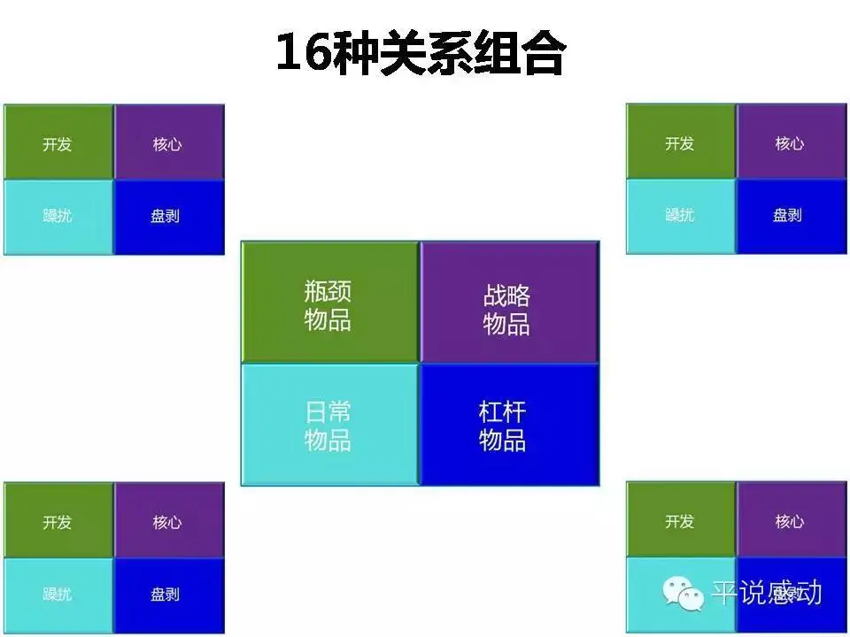 上2周分析过物料分类(回复数字5查看原文章),和供应商偏好模型(回复数字6查看原文章),根据这2个矩阵,我们可以发现供需双方的关系可以变出如下16中组合: