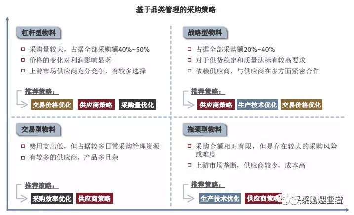 品类管理:制定分类标准对目标物料进行分类,形成品类树,并对主要目标物料进行矩阵分类,指导进一步制定差异化的策略组合。