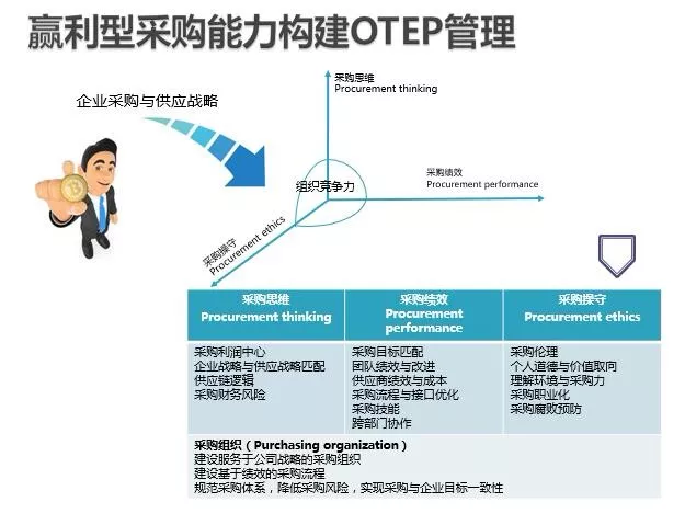 在采购与供应链OTEP模型中,基于企业竞争优势与采购战略管理,结合OTEP模型实现战略落地,其中最重要的过程就是采购组织与流程。因为其涉及采购制度滞后影响客户需求响应?采购运营效率,甚至漏洞防不胜防?……建设基于公司战略服务目标与绩效管控的采购组织,规范采购体系,降低采购风险,实现采购能力,否则一个字,乱,卒。