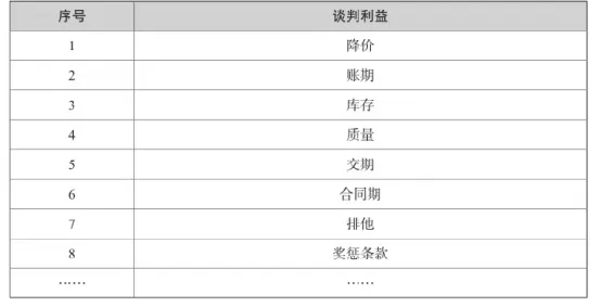 当有多个谈判目标时,采购人员应当给目标排序,此时可以使用谈判利益次序表,按照次序与供应商进行利益交换。