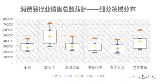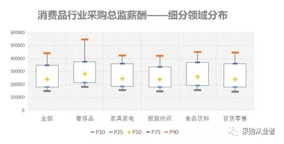 这说明消费品行业中,大部分企业对采购总监在企业内部的重要程度是可以达成共识的。虽然各细分行业中,龙头企业们的付薪情况会因为企业营业额、企业对该岗位的理解不同以及人才来源不同而有所差异,但在采购总监这一岗位的薪酬定位上,各细分行业总体来看差异并不大。