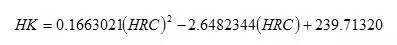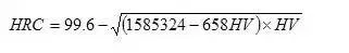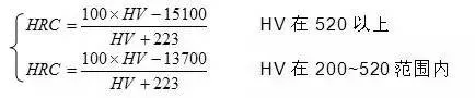 本公式与国家标准实验换算值对照,换算式计算结果与标准实验值之误差为±0.1HRC。