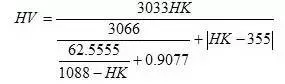 此公式换算结果与国家标准换算值对照,换算误差为±2HV。
