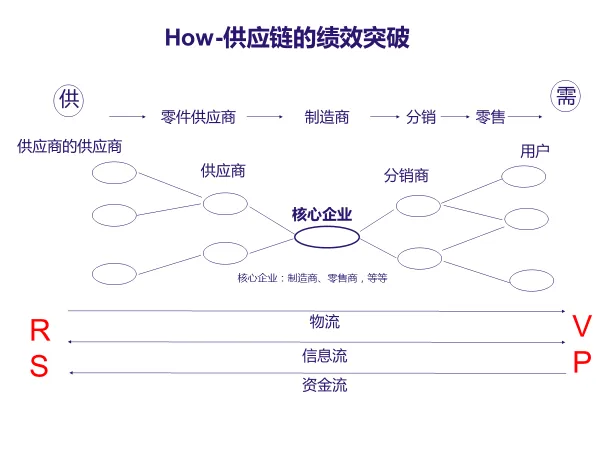 其实供应链最精准的翻译应是供需链或价值链,它是为满足客户需求而存在的端到端的全过程,是供应物流、生产物流、销售物流三者的系统协同。
