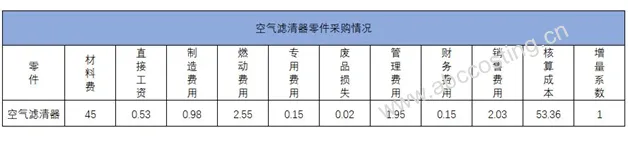 fi为各成本项;li为各成本项所对应的固定系数;n为成本项数;F为单个零部件固定成本