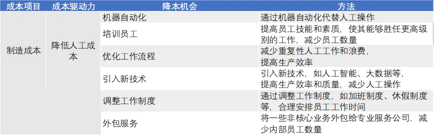 第二,降本增效不能单靠各个执行点奇兵突围,必须有完善的管控体系、文化、机制等配套。这是企业长期维持成本优势的关键因素。