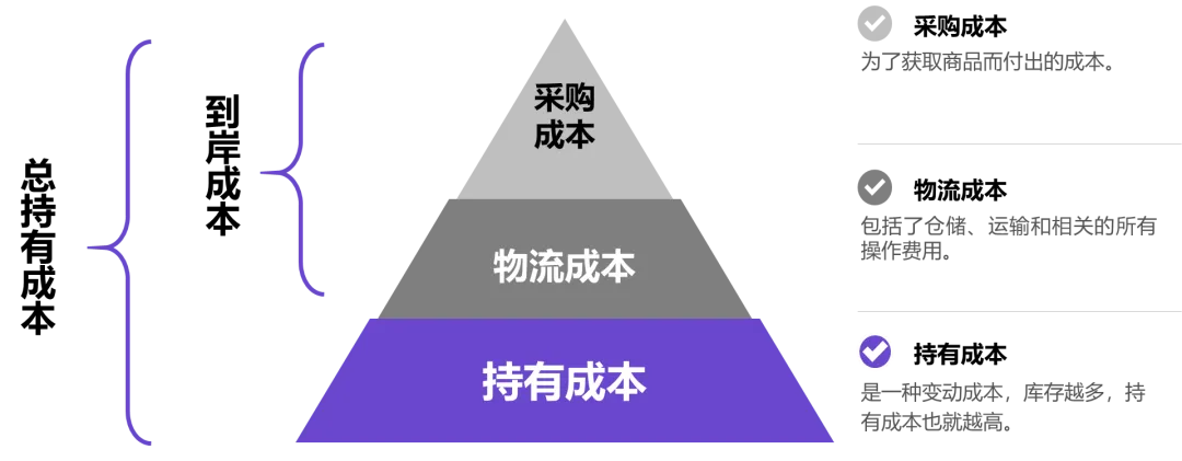 采购、物流和持有成本的总和就是库存的总持有成本。
