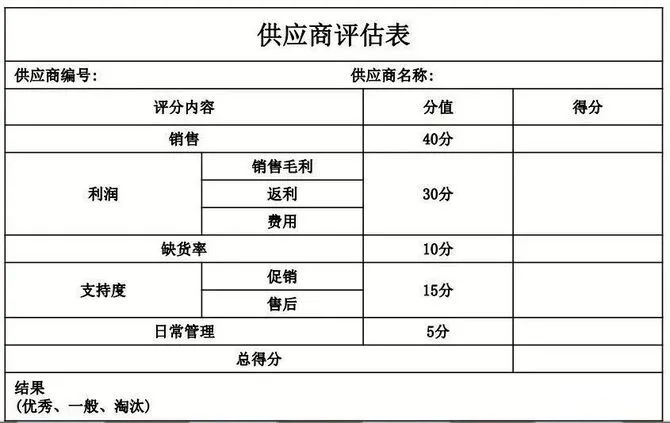 4、支持度:根据供应商促销和售后的支持力度,评出供应商支持得分,满分15分;