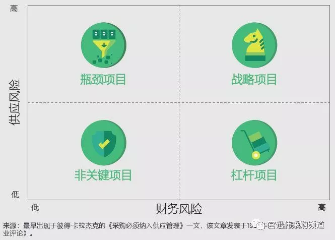 这个模型,把采购的物料分成四个大类,企业的采购一般会这样分类进行管理。