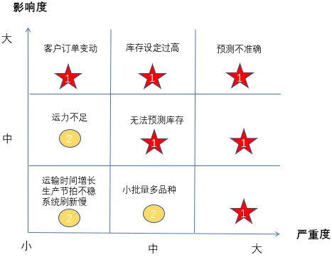 03降低库存需要投入资源和时间。所以,除了考虑对降低库存贡献度的大小,我们还要考虑解决问题的复杂程度。