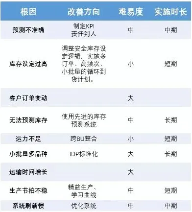05我们需要从绩效指标、责任人、投资等角度对库存成因逐一制定改善方案并定期监控。(改善方案并不孤立,而是与需求管理、计划管理、供应管理、全面质量管理、精益生产等都相关。)