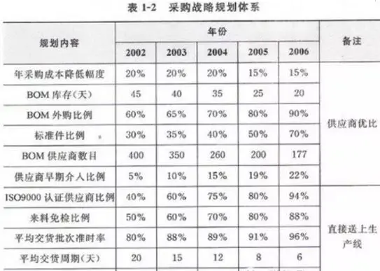 表1-2是一个较为典型的某企业采购战略规划方案,供大家在实践中借鉴。