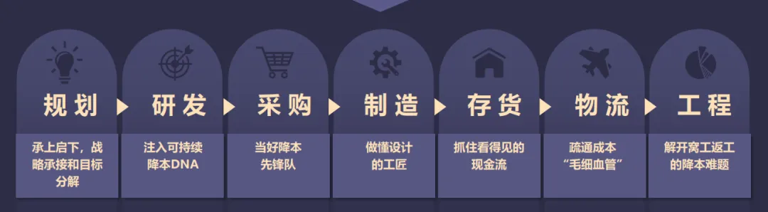 降本要全流程端到端进行成本管控,挖掘每一个阶段的降成本潜力,不放过每一个降本机会点,让冰山下的成本浮出水面并各个击破。