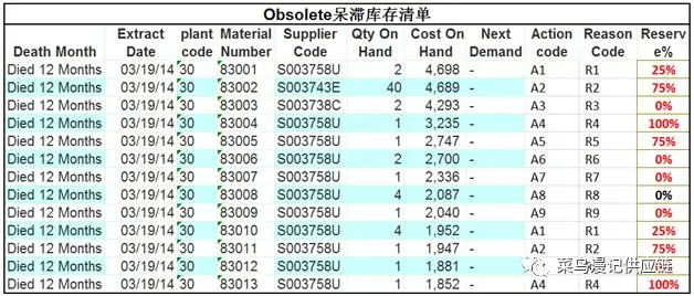 呆滞(Obsolete):过去一年时间内没有任何消耗,并且未来1年也没有需求的物料。
