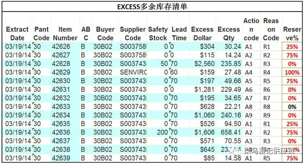 多余(Excess):一般指当前库存数量按照物料计划超出未来1年所有需求的物料。